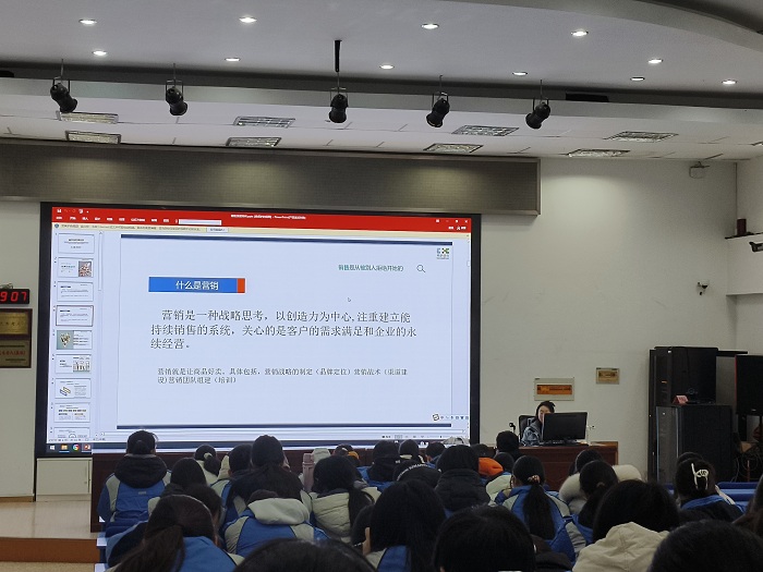 曹经理围绕销售技能进行了深入剖析,主要包括销售话术、客户关系维护、观察客户的技巧等内容,结合生动的案例,为同学们提供了宝贵的指导和启示。课程中曹经理强调,营销是一种战略思考,以创造力为中心,注重建立能持续销售的系统,关心的是客户的需求满足和企业的永续经营。课堂上,曹经理还分享了她在百信企业工作近十年的经验和心得,让同学们对行业发展有了更清晰的认知。